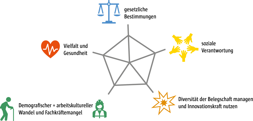 In den letzten Jahren wurde immer stärker der Business Case Diversity hervorgehoben, also der wirtschaftliche Nutzen von Diversität für Unternehmen herausgearbeitet. Ein Argument ist hierbei die höhere Innovationskraft: Unternehmen versprechen sich von divers zusammengesetzten Teams innovativere Lösungen [13]. Auch wird angeführt, dass Unternehmen mit konsequentem Diversity Management wirtschaftlich nachhaltig besser abschneiden würden. Dabei werden vor allem eine inklusive Führung und ein diverses Führungsteam als Erfolgsfaktoren hervorgehoben [14]. Es soll aber nicht unerwähnt bleiben, dass auch Kritik an dieser ökonomischen Erfolgsperspektive auf Diversity Management immer lauter wird. Forscher:innen kritisieren Aussagen von mehr Gewinn durch Diversity Management und weisen auf eine zu schlechte Datengrundlage hin. Es wird immer stärker hervorgehoben, dass eine Beschäftigung mit Diversität kein wirtschaftlicher Erfolgs- oder Innovationsmotor ist, sondern vielmehr eine Notwendigkeit angesichts des demografischen Wandels und Fachkräftemangels, auf die im Folgenden noch näher eingegangen wird [15].