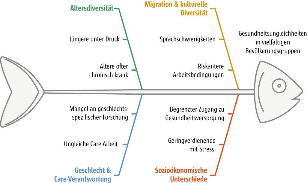 Der zweite große Strang der Forschung richtet den Blick nicht primär auf Leistung, sondern auf die gesundheitlichen Folgen von Diversität. Lange Zeit war dieser Aspekt in den Hintergrund getreten, da Organisationen vor allem den ökonomischen Nutzen von Vielfalt im Auge hatten. Erst in den letzten 15 Jahren ist ein deutlicher Perspektivwechsel zu beobachten: Zunehmend wird untersucht, wie sich Diversität auf das psychische Wohlbefinden, auf Stressbelastungen oder auf das Risiko von Erschöpfung auswirkt [7], [13], [14], [15]. Auch hier zeigt sich ein ambivalentes Bild. Vielfalt kann eine Ressource sein, wenn unterschiedliche Perspektiven im Team zu sozialer Unterstützung und höherer Resilienz führen. Sie kann aber auch zur Belastung werden, wenn Unterschiede zur Bildung von Subgruppen beitragen, die Spannungen verstärken und das Risiko emotionaler Erschöpfung erhöhen [16]. Studien belegen außerdem, dass Alters- oder Geschlechterzusammensetzungen je nach Kontext sehr unterschiedliche gesundheitliche Folgen haben können – in manchen Fällen tragen sie zum Wohlbefinden bei, in anderen erhöhen sie das Risiko für gesundheitliche Beeinträchtigungen.